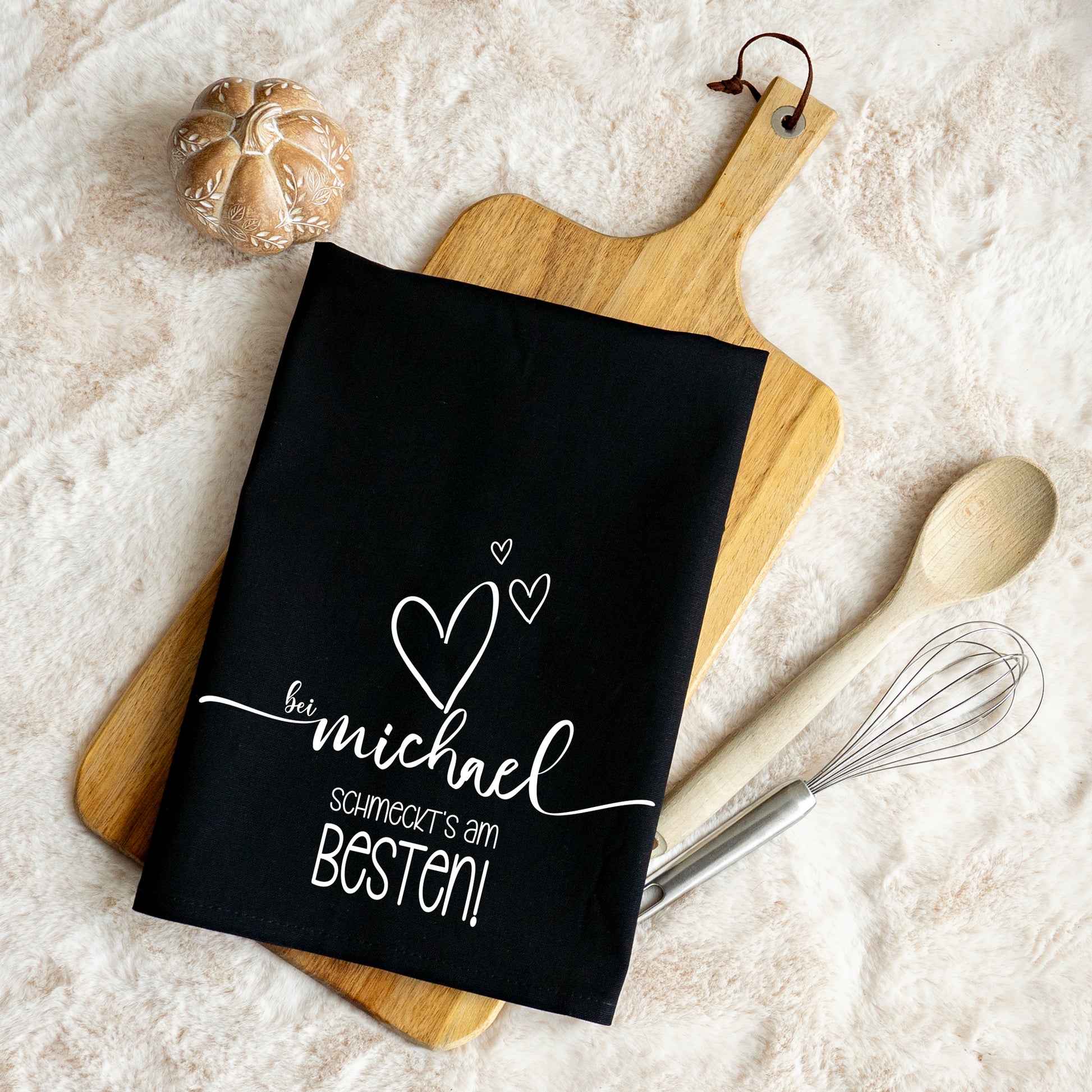 Geschirrtuch „Bei ... schmeckt's am besten“ – personalisiert