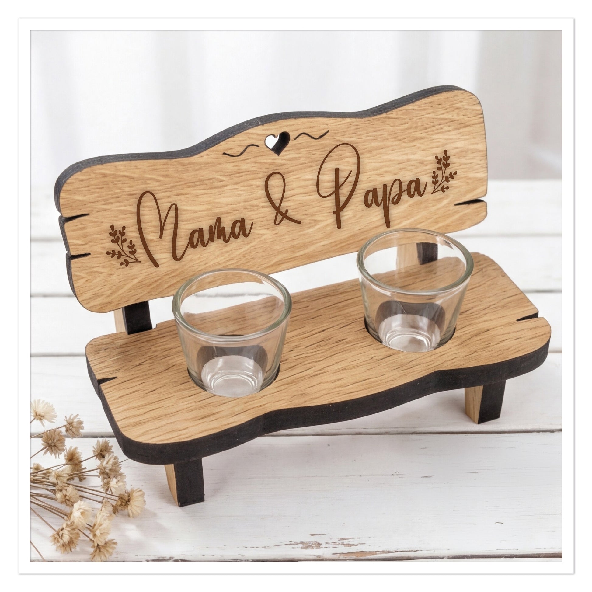 Diese personalisierte Schnapsbank aus Eichenholz ist ein liebevolles Geschenk für Paare.