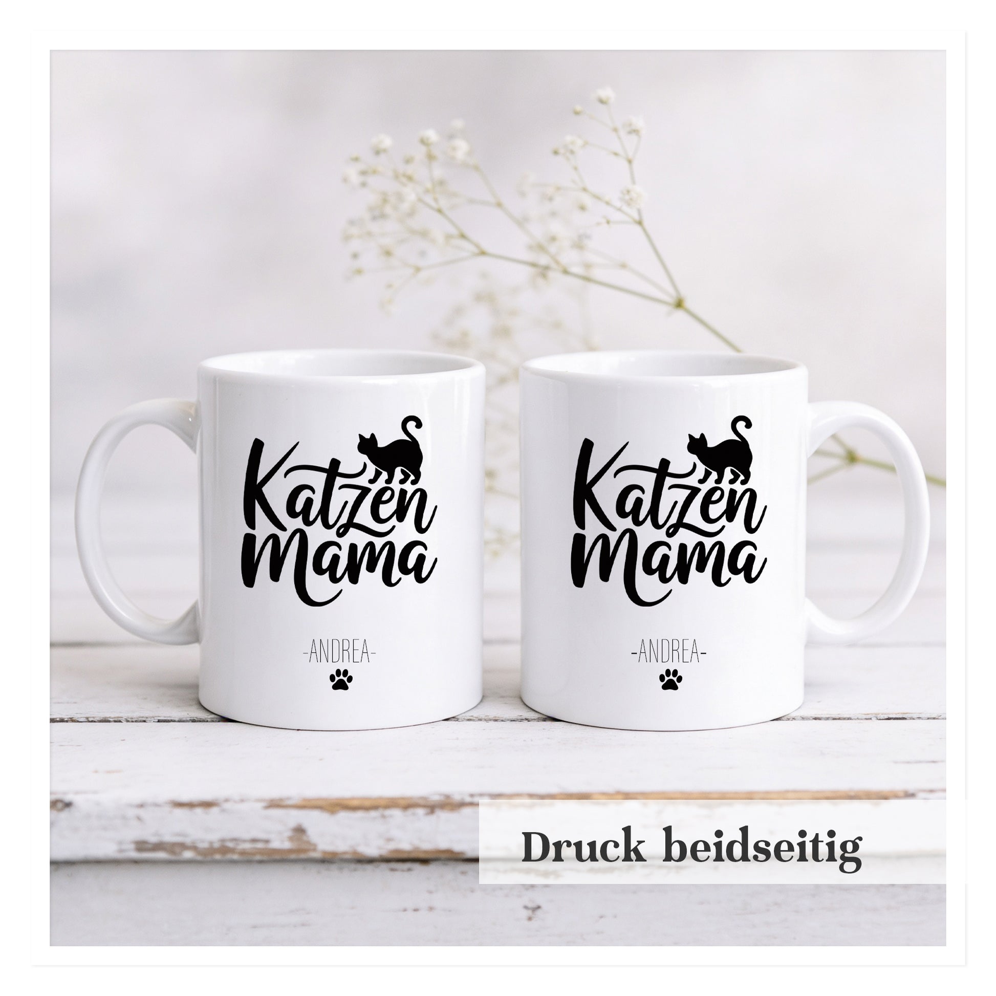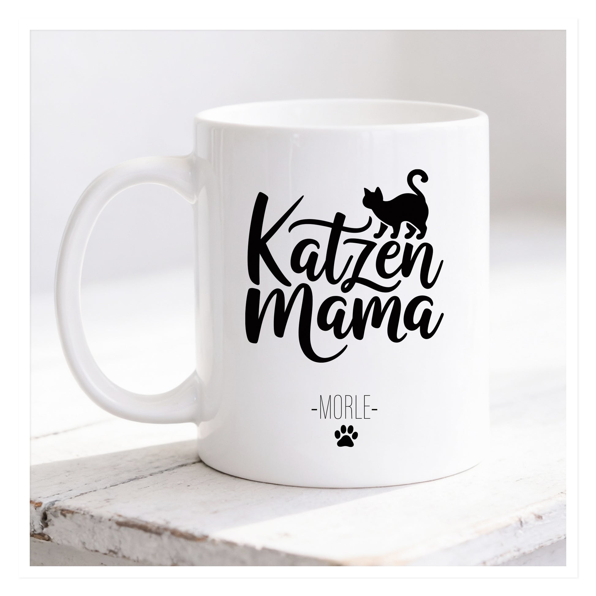 Bitte gib beim Kauf den gewünschten Namen an, der unter „Katzenmama“ gedruckt werden soll.