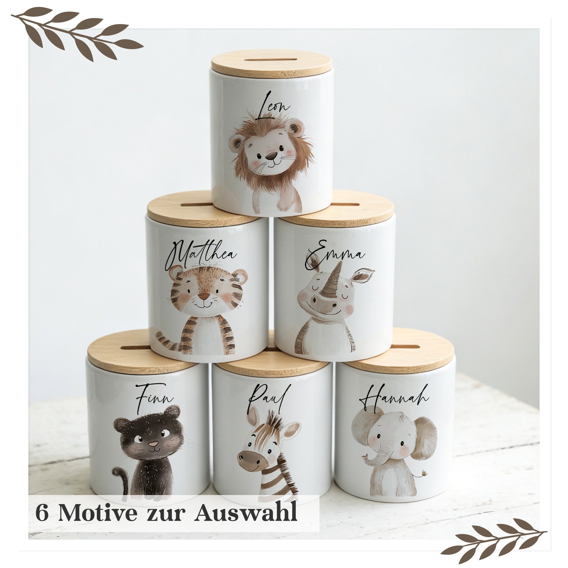Diese liebevoll gestaltete Kinder-Spardose aus Keramik ist mehr als nur ein Platz für Münzen: Sie ist ein persönliches Erinnerungsstück, das Kinder über viele Jahre begleitet. Mit dem Namen des Kindes personalisiert und einem von 6 sanften Tiermotiven verziert, wird jede Spardose zu einem echten Unikat.