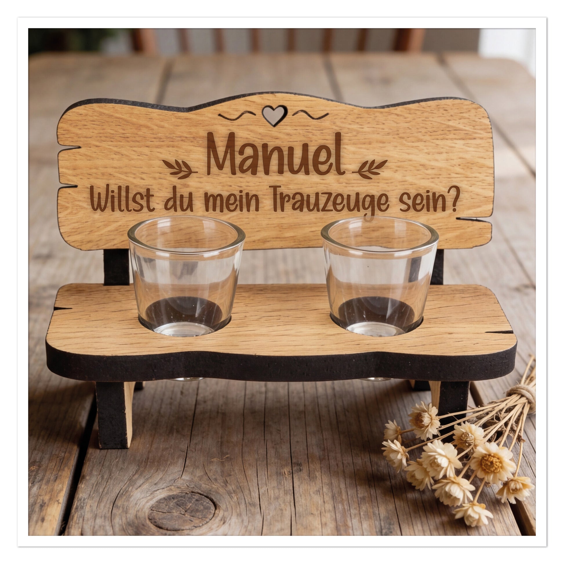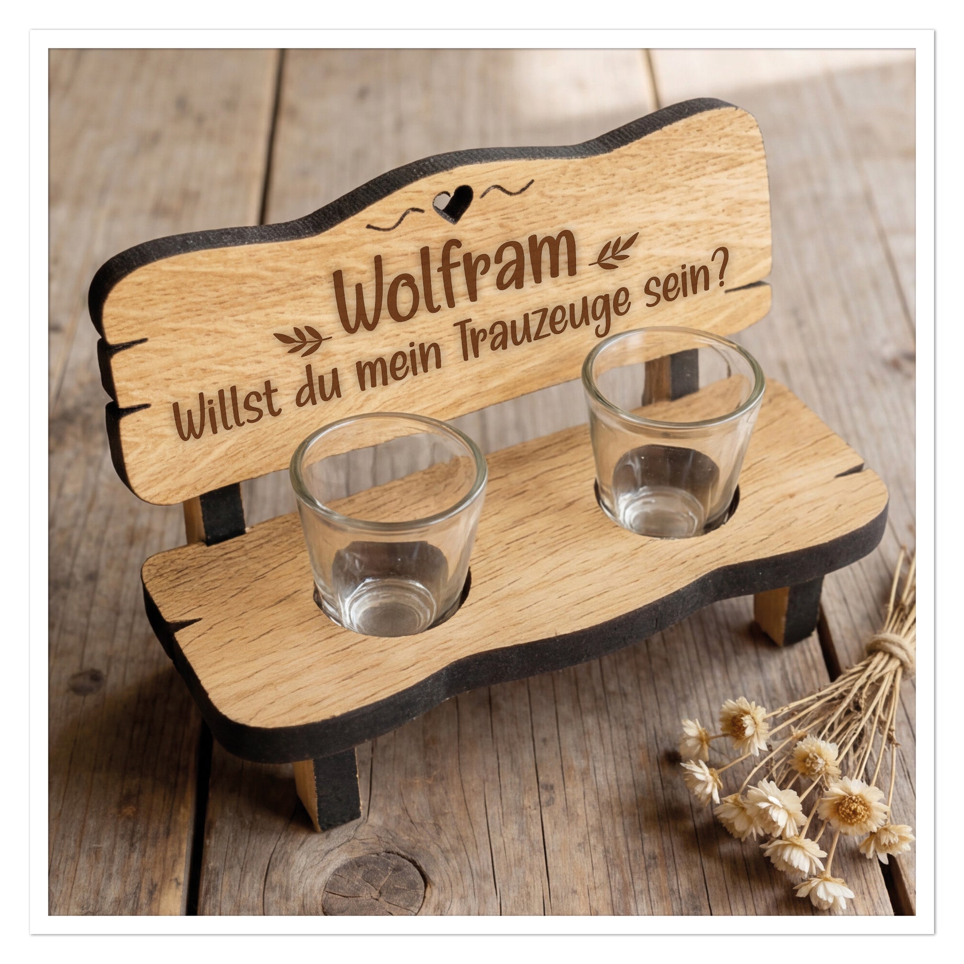 Personalisierte Schnapsbank Trauzeuge fragen