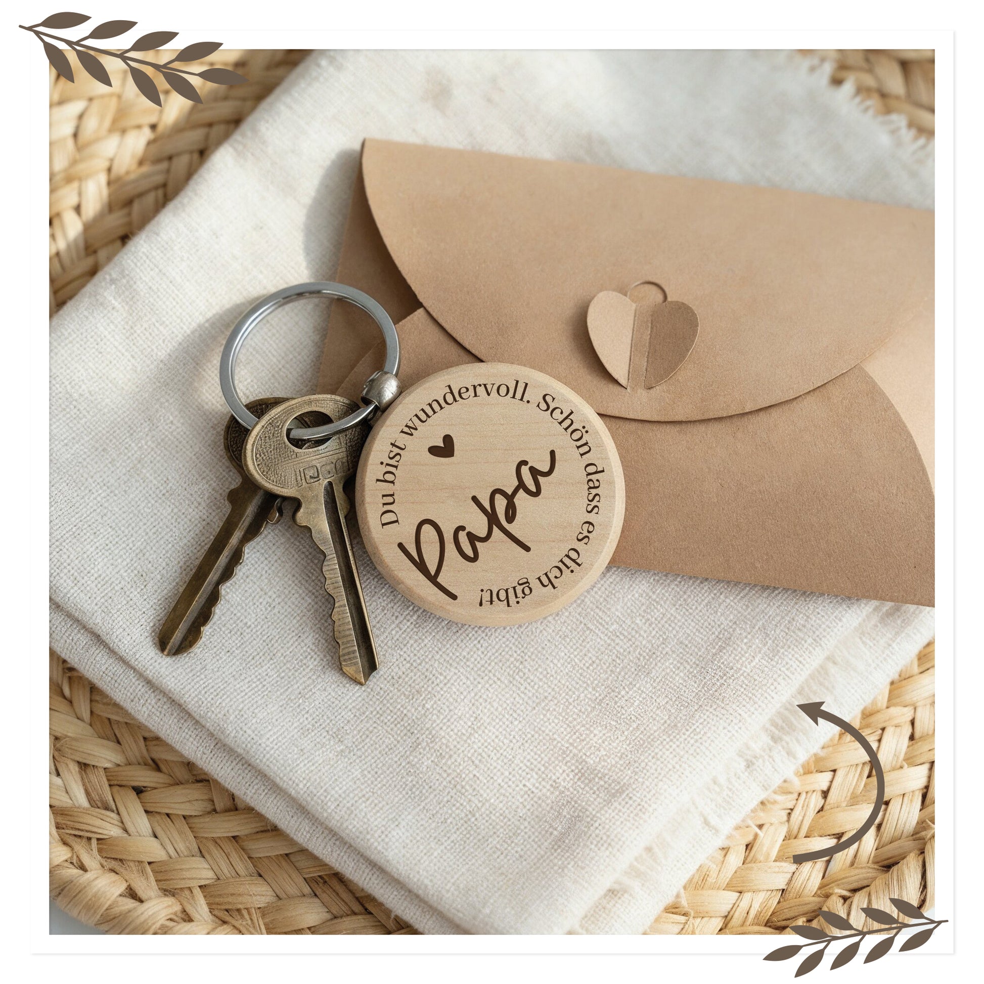 Personalisierter Holz-Schlüsselanhänger „Papa, Du bist wundervoll“