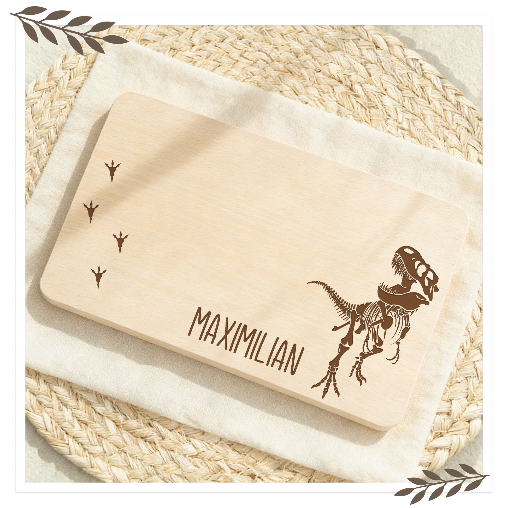 Dieses personalisierte Frühstücksbrett mit detailreichem Dino-Skelett bringt Abenteuer auf den Tisch. Perfekt für kleine (und große) Dinosaurier-Fans, die ihr Frühstück mit einer Portion Urzeit beginnen möchten.